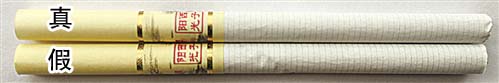 1.正面商標(biāo)紙印刷工藝差異對比:真品商標(biāo)紙采用膠印印刷,中間“利群”文字及拼音采用壓凸?fàn)C金工藝,用手摸凹凸感明顯,“蘇堤春曉”主體圖案顏色較深;假煙采用高清掃描仿制印刷,中間“利群”文字及拼音用手摸無凹凸感,“蘇堤春曉”主體圖案顏色較淡,商標(biāo)紙整體顏色偏黃。