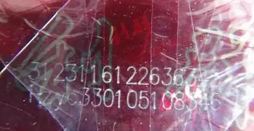 真煙條碼為一次性瞬時(shí)掃碼完成,而假煙條碼有分多次完成,有些甚至是一個(gè)一個(gè)字地來完成。假煙條碼的特點(diǎn):如圖假煙條碼為兩側(cè)數(shù)字條碼先掃,再將透明紙的兩端封口包裝好后,最后將中間部分?jǐn)?shù)字條碼掃入,中間部分沒有透明紙覆蓋,與兩側(cè)色澤、光澤均有較大差異,摸上去有明顯的凹凸感,而兩側(cè)的數(shù)字碼因有透明紙覆蓋,無此感覺。